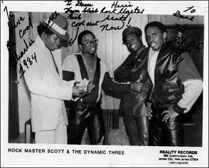 Rock Master Scott & the Dynamic Three is an old school rap group that is best known for their single “The Roof Is on Fire” that was copied by many. They all grew up in the Bronx of NYC. Three of the members lived in the same building on Webster ave. Before they became a rap group – they were doing their own thing. Richard aka Slick Rick and Gregory aka MBG were hangout partners. They played sports together while Charles aka Charlie Prince was in the house playing music and watching them from out the window as they played football; baseball etc. Richard was also into music, played drums mixed music and was with another group, but it was never known to Charles. Now Gregory on the other hand was a photogragher and still is til this day had a knowledge of both of these guys and decided to put them two together for a show performance in New Haven CT. at a club called the (Le Joint) run by his cousins Cody and Andre. Richard did not want anything to do with Charles due to the fact they had a discrepancy over his childhood sweetheart. So he wanted another guy to go with him named Buster who also lived in the building across from them. Gregory took Charles anyway along with Richard and Buster. So they made their way to New Haven CT. They never had a group name at that time. People just called them: Charlie D and the crew. They did the show and stayed out there with Gregory family members for a few days and then went back to New York. They then decided to call the group: Devilish Three. Unfortunately Buster could not continue to be with the group because he was a MC for another DJ named Smitty Rock. His MC partner Name was Charlie Rock. That is when Gregory decided to take the place of Buster as a MC. They still was called Devilish Three until They entered a battle at a club across the street from their building called: Your Spot formally known as Burger King. A man by the name of Jerry Blood Rock changed it into a club and needed to get some known MCs to perform there as a grand opening. They happened to be one of the groups he asked and others were also asked. The only problem they had – they did not have a DJ. They all knew of a neighborhood DJ who played in the parks known as Kool Dee and because Charles was taught by him – how to mix and scratch records- asked him to be their DJ for the battle. He became their DJ but they never had time to practice with him so they practiced amongst Themselves. When the day came for the battle – he was there to DJ – and they won of course. But it came to the point where they had to get a reliable DJ. That is when they met up with Mark aka Master Scott before it was Rockmaster. Let me explain how he got the name Rockmaster. Since Jerry Bloodrock was the producer – he took the (Rock) from his own name and then put it together with (Master) and it became Rock Master. Anyway, Scott was waiting the next day across the street by the club they had the battle and the three of them came down stairs to vote him in as a member of the group. Scott was The DJ of another group, who were also in that battle, but he decided to take the DJ position for the winning group. He was always on time for practice. They were inspired by The Cold Crush Brothers and The Fantastic Five, when they use to have their battles. They practiced at Gregory aka MBG’s mother house who was very kind to them, but at night they had to practice quietly. Their main spot to practice was at Richard aka Slick Rick’s mother house (RIP). Before we go any further – let’s clear the Slick Rick name because there were two Ricks. If you look at the date release of Request Line by RockMaster Scott and the Dynamic Three (1984 ) who started the Reality label – then look at the date release of The Show by Dougie Fresh and the Get Fresh Crew (1985), you would see that the Original Slick Rick was with the group Dynamic Three and the other Rick aka Ricky D was with Dougie Fresh. Both groups were on the same label (Reality Records) that is why people got their information wrong about these two characters. Dynamic Three wanted Dougie to be on the label with them because their main purpose were to get all the good rappers signed to that label with them like other labels before them. But of course it was never acknowledged by Dougie Fresh. But any way Richard aka Slick Rick moms, she was like their mentor and gave them alot of inspiration. They would be in her living room rehearsing and she would be sitting on the couch watching them and making sure they did it right. She fed them, gave them something to drink when they were out of breath. She been with them from the beginning til her departure. She been with them on many road trips and met some of the other performers like Force MDs, Rappin Duke and a few others. This was during the times they made (Request Line and The Roof Is On fire). But prior to that, they were doing shows with other local groups that were well known such as, The Cold Crush Brothers; Grand Wizard Theodore and The Fantastic Five; Master Don Committee; DJ AJ when he was with Chief Rocker Busy Bee Etc. They started performing in places like T Connection; Harlem World; also places in Jersey with other groups such as, Sweet, Slick and Sly. They did shows for another promoter named Armstrong. Now Scott had a connection with another promoter named Man Dip Lite, who always had shows in Long Island lined up for Grandmaster Flash and The Furious Five. He also had shows lined up for Rockmaster Scott and The Dynamic Three at this roller skating rink up in Long Island. After doing a few shows here and there, finally the day came when Jerry Blood Rock wanted to record the group in the studio. It took one year from the time of him asking them, but finally that time came. They recorded their first song called: It’s Life (You Gotta Think Twice). DJ Wiz Kid (RIP) was responsible for the music. This was the first time they have ever seen a recording studio, which was called unique recording